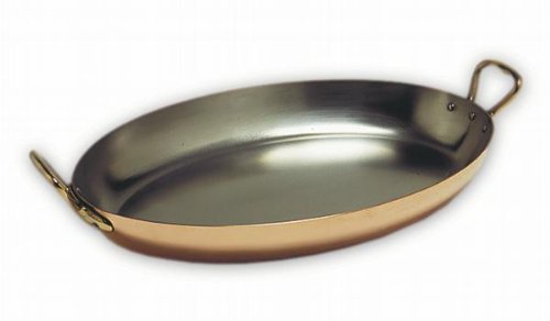 Mauviel, a French family business established in 1830 and located in the Normandy town of Villedieu-les-Poeles, is the foremost manufacturer of professional copper cookware in the world today. Highly regarded in the professional world, with over 170 years of experience, Mauviel offers several different lines of copper cookware to professional chefs and home cooks that appreciate the benefits of their high quality products. Professional cooks can attest that copper cookware is an essential part of every cookware collection as it is 2X more conductive than aluminum and 10X more conductive than stainless steel. This advantage makes copper the very best material for cooking, as it is unsurpassed in its ability to heat up evenly and rapidly and to cool down quickly, allowing for maximum control and great cooking results. CUPRINOX pour la table combines two efficient materials that are perfect for cooking and table presentation a 1.2-2 mm exterior of copper and a very thin stainless interior. The copper exterior makes up 90% of the sandwiched material and provides for excellent conductivity. The stainless steel lining is easy to clean and very durable. CUPRINOX pour la table has straight sides and has bronze handles that are attached to the bodies with sturdy stainless steel rivets. CUPRINOX pour la table is resistant to high temperatures and scouring pads on the interior and comes with a limited lifetime warranty for household use only. It is the lightest weight of all of the Mauviel copper cookware lines.